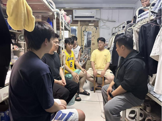 国庆中秋“双节”将至,为掌握假期留校学生生活状况,让留校学生感受到家的温暖。太阳集团网址8722党委书记陈卓组织带领全体辅导员,深入学生宿舍,走访慰问留校同学,了解同学们的假期规划,送去学院的温暖关怀与节日祝福。